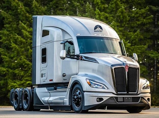 The semi-truck operates using a high-torque diesel engine that transfers power through a heavy-duty transmission to the drive axles. The fifth-wheel coupling system connects the tractor to the trailer, allowing flexible movement and load distribution for safe highway transport.